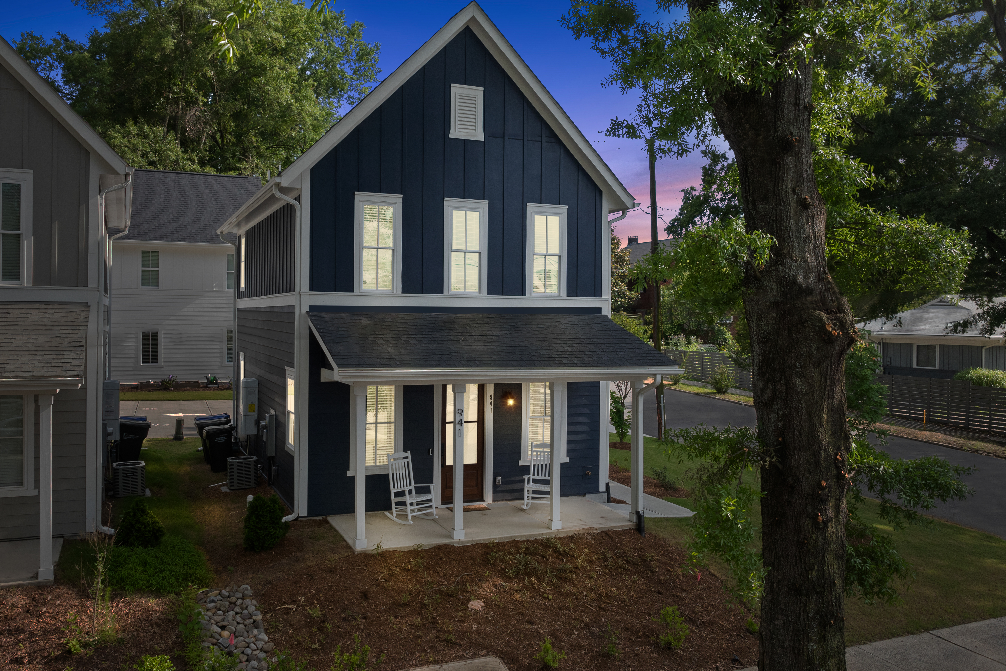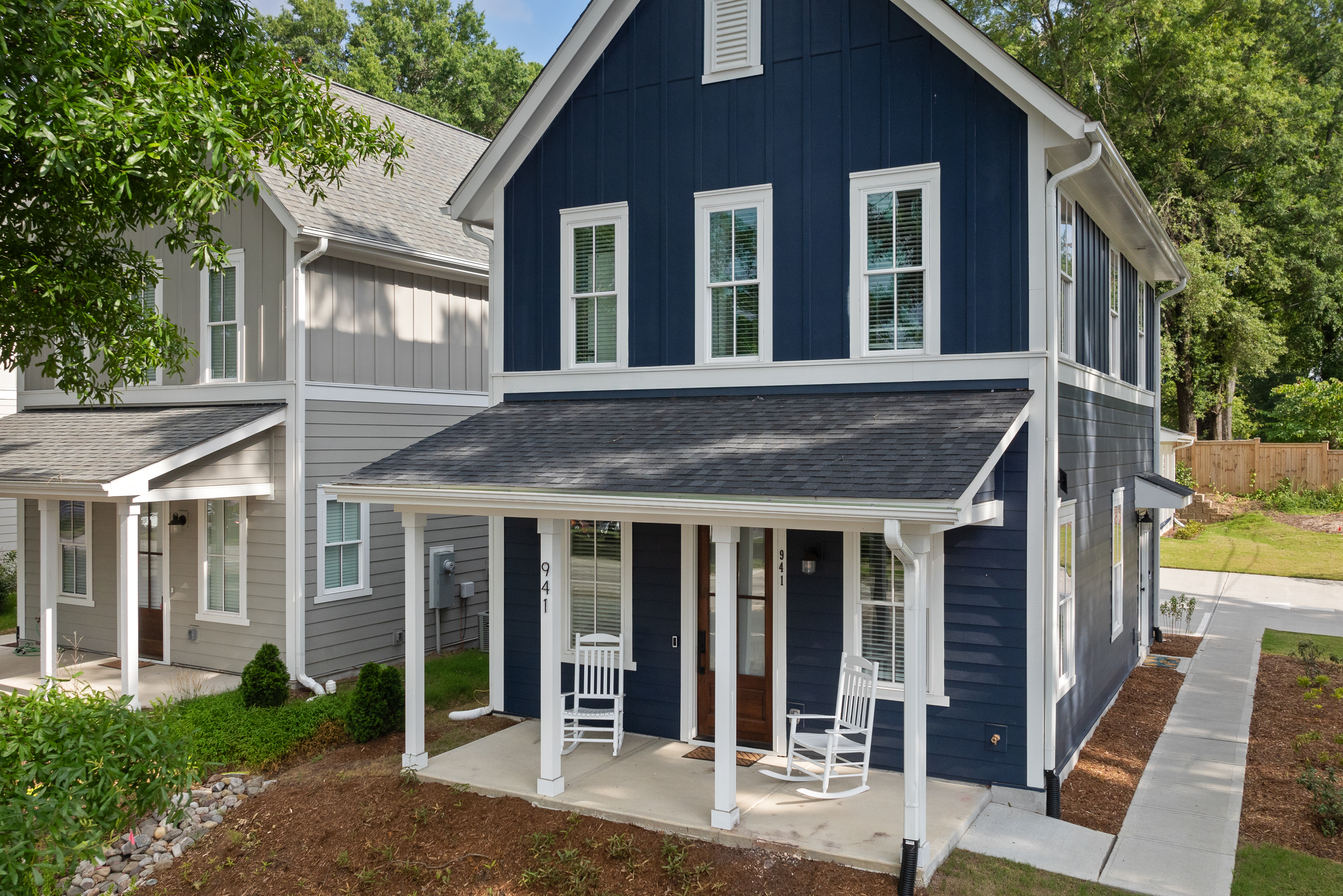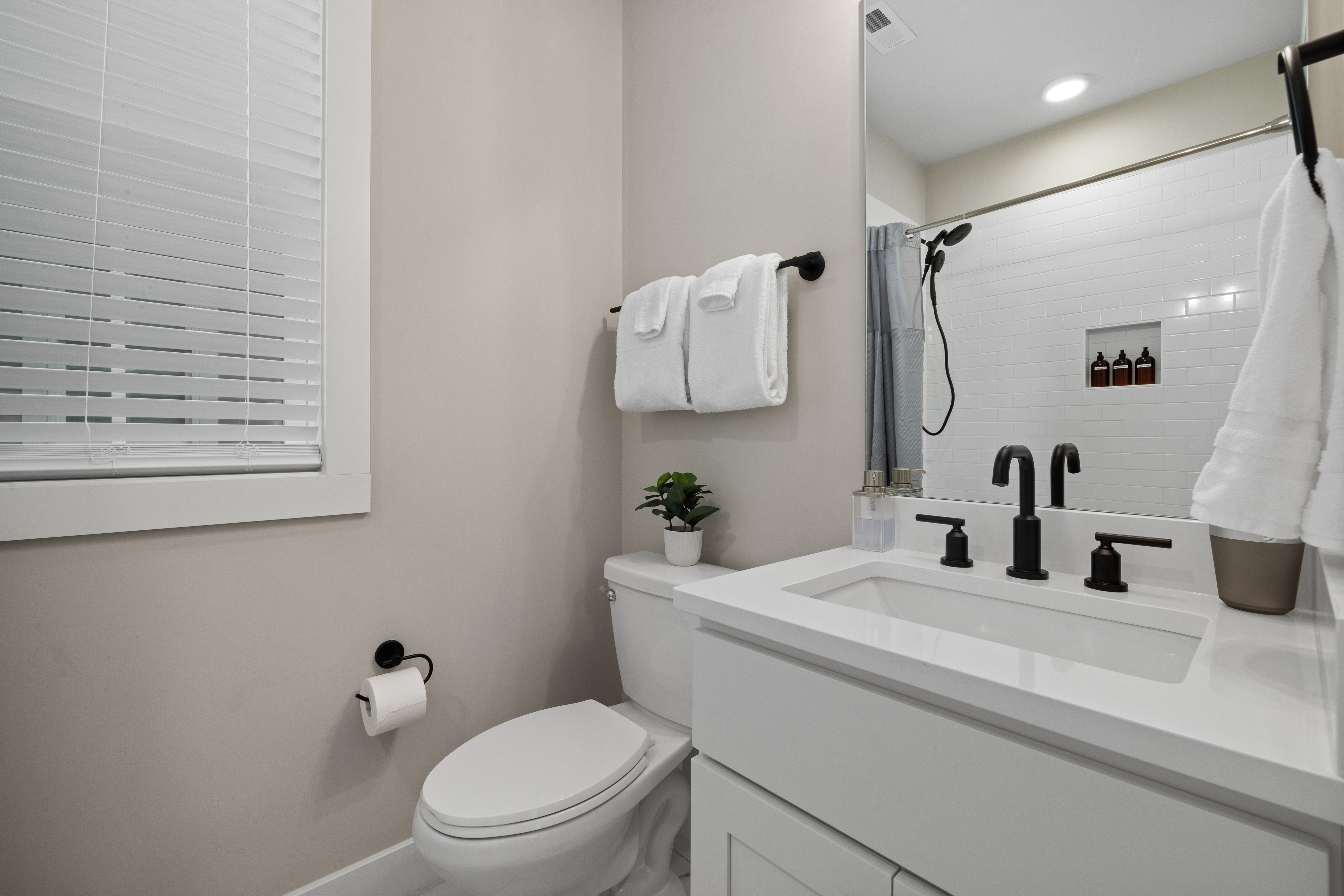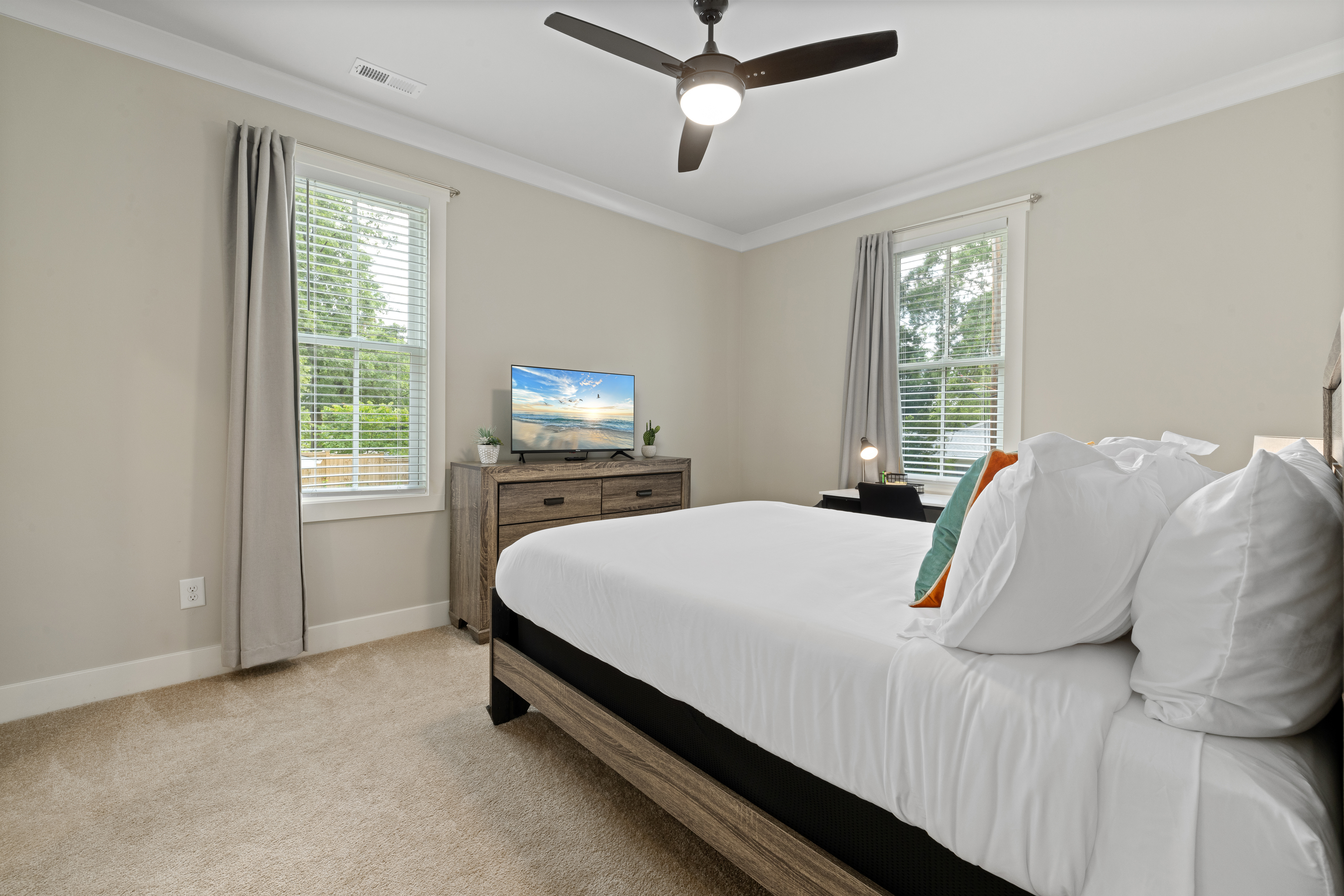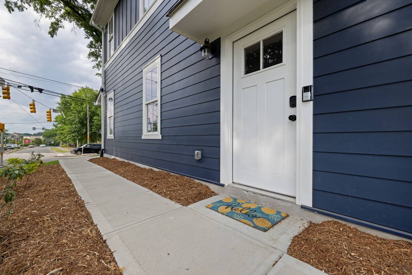 Welcome to our modern, blue, newly built 2BR home in Trinity Park — designed for comfort, convenience, and a true home away from home. Perfect for hospital visits, parents of students, faculty stays, or exploring Durham, we’re just minutes from Duke University, Duke Hospital, Ninth Street dining, Whole Foods, and downtown. Inside you’ll find: • Two ensuite bedrooms with blackout curtains, plush bedding, walk-in closets, desks, TVs, ceiling fans, and white noise machines • Bright open living area connected to a fully equipped kitchen with quartz countertops, stainless appliances, and a powder room for guests • Thoughtful touches like plush towels, stocked coffee options (drip + Keurig), and games for downtime • Washer/dryer for longer stays, plus two dedicated driveway parking spots with a Level 2 EV charger The house is on a main street, so some road noise is possible, but most guests find it comfortable thanks to blackout curtains and white noise machines. We’ve designed this space for both short and medium-term stays, blending the polish of a new build with the warmth and details of a lived-in home. Guests often call it their “home away from home.”