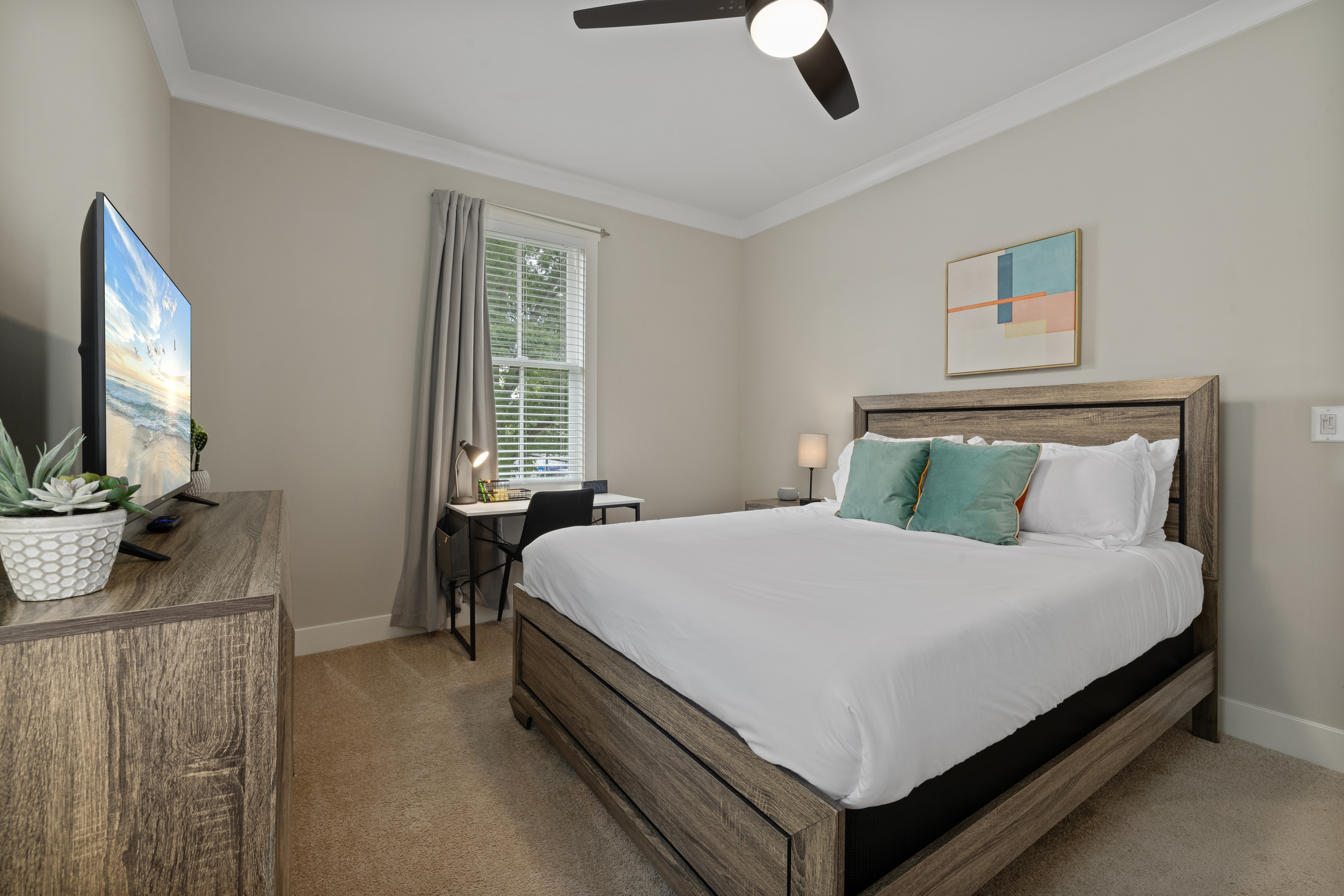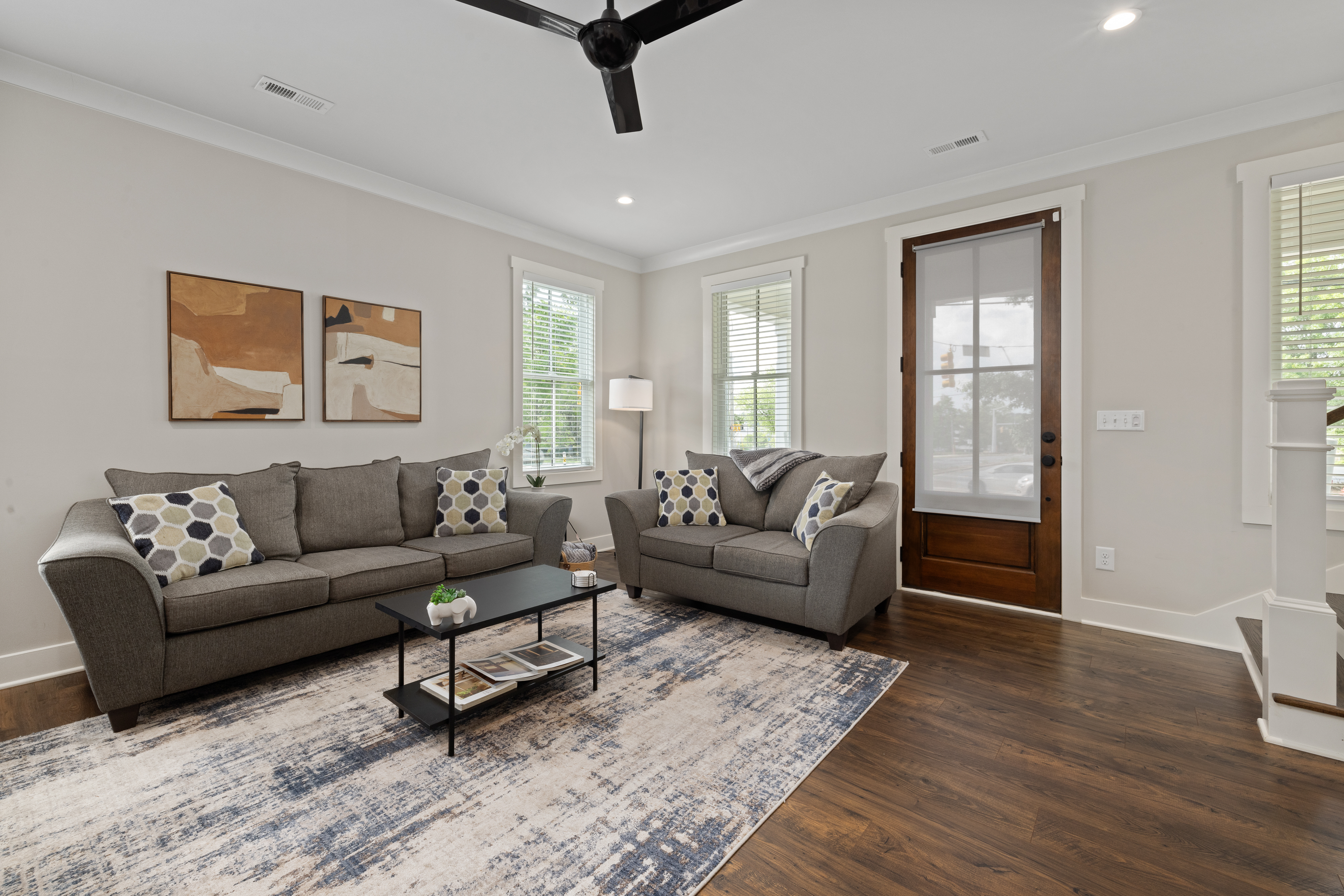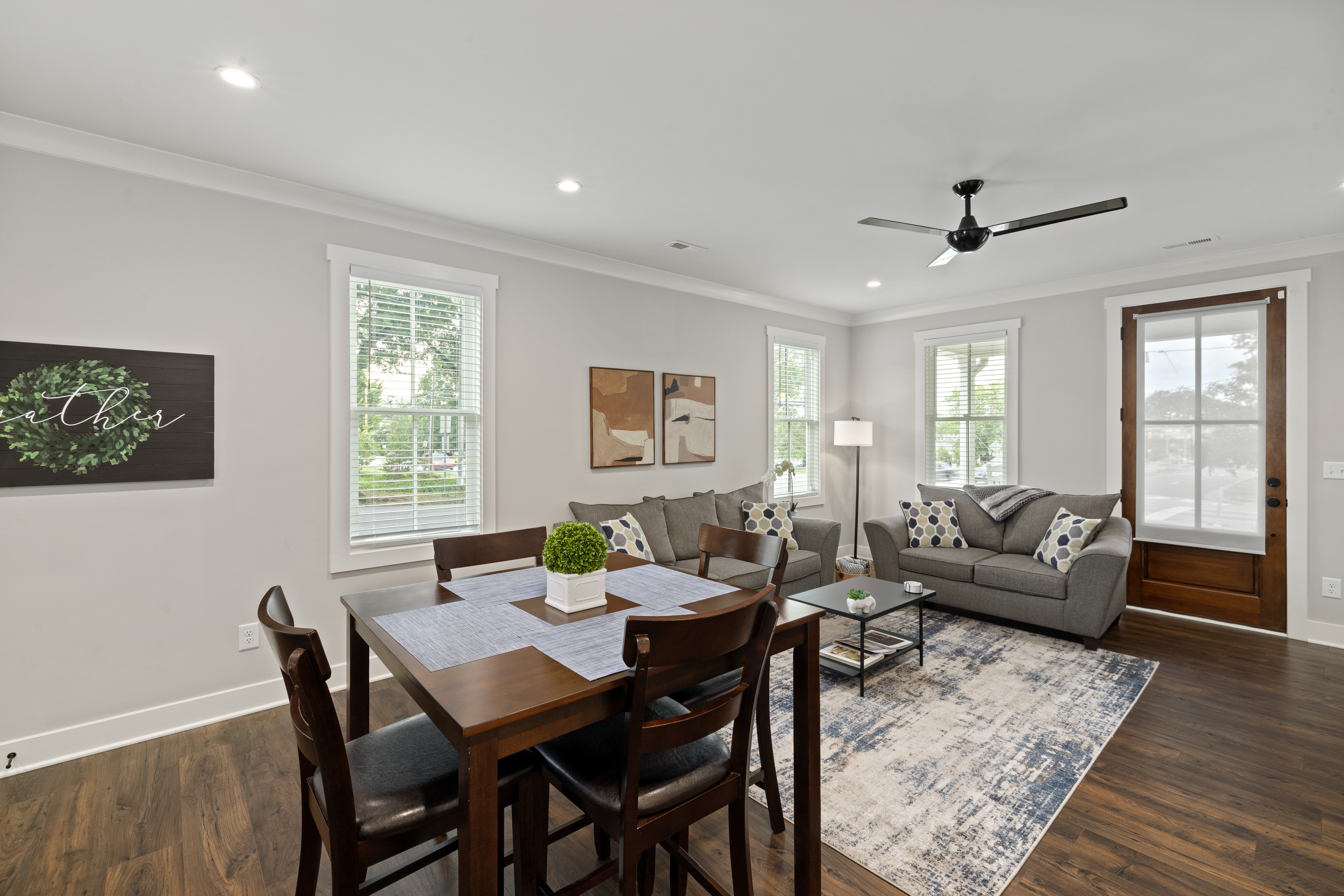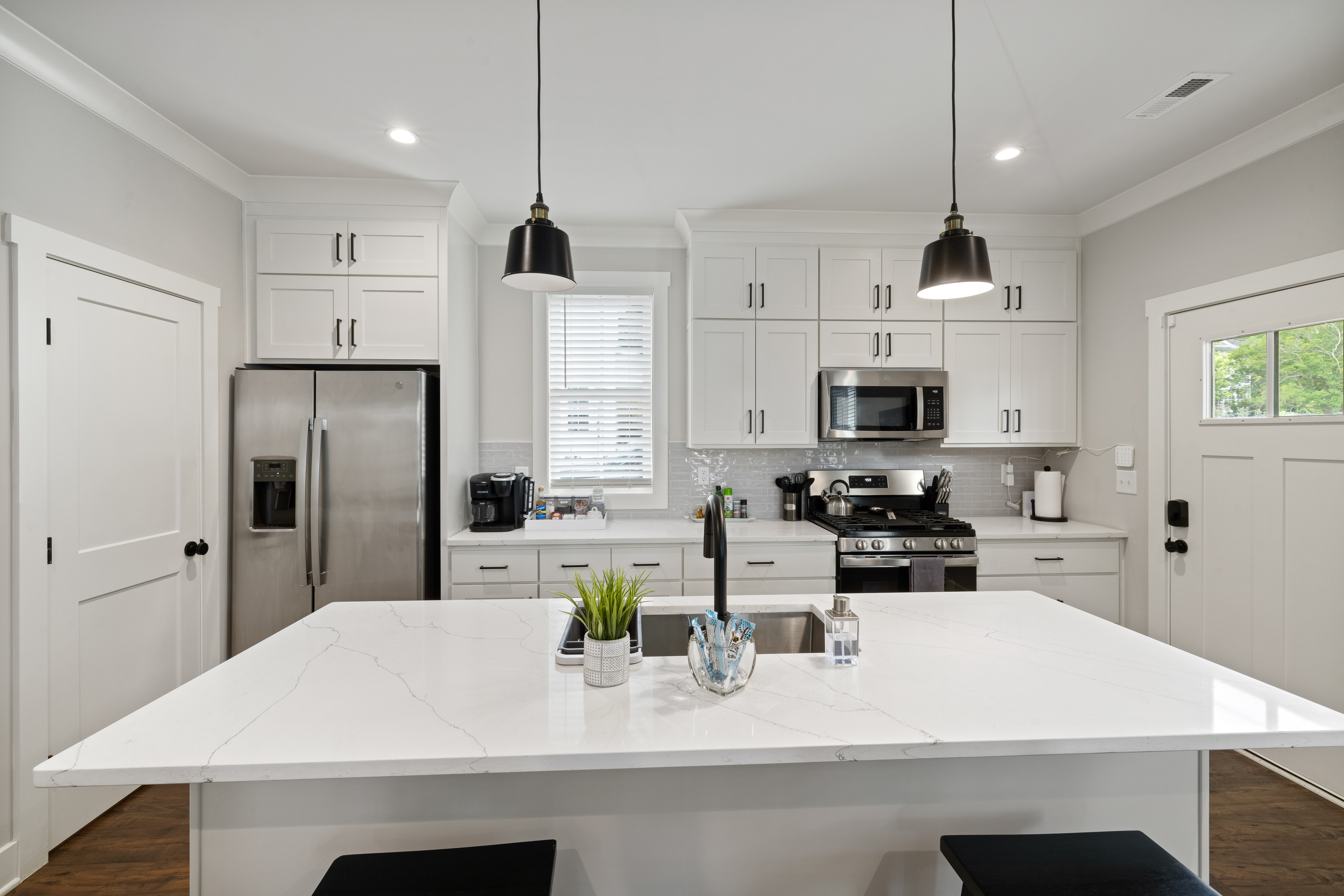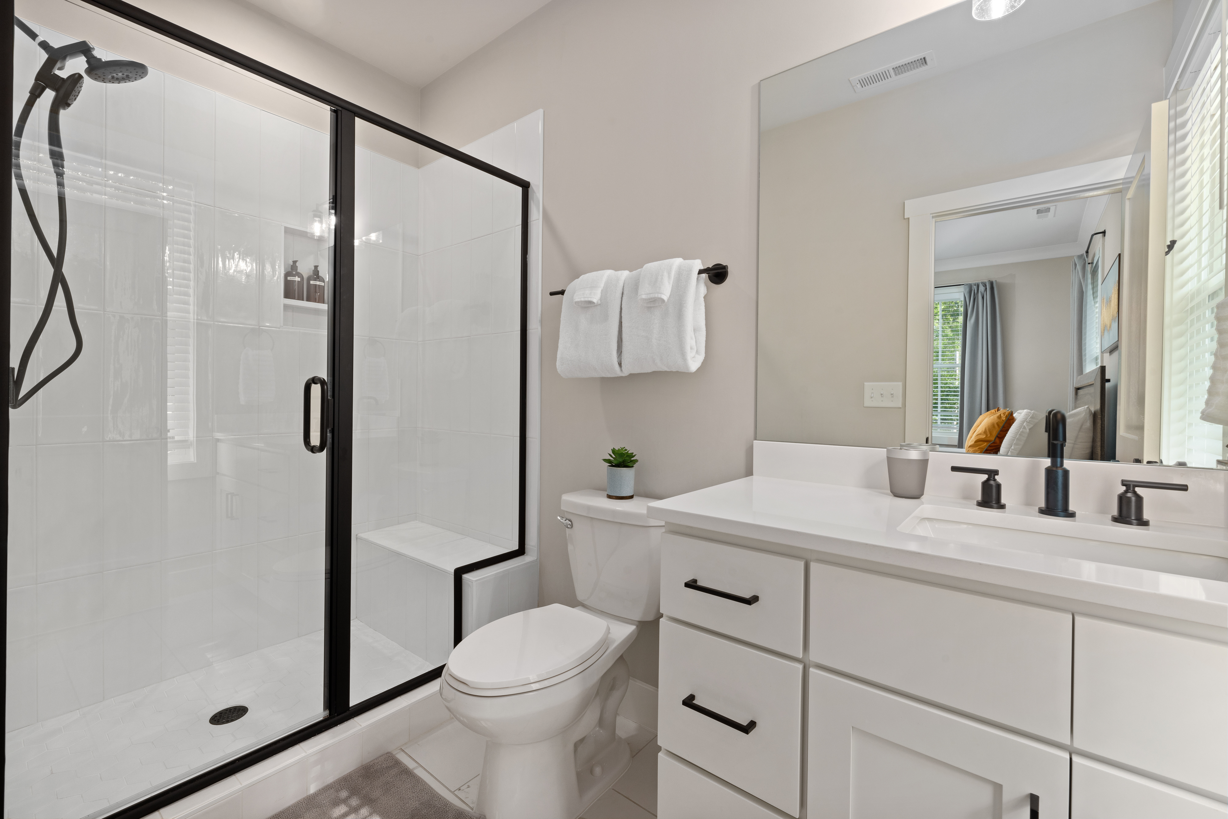 Welcome to our modern, blue, newly built 2BR home in Trinity Park — designed for comfort, convenience, and a true home away from home. Perfect for hospital visits, parents of students, faculty stays, or exploring Durham, we’re just minutes from Duke University, Duke Hospital, Ninth Street dining, Whole Foods, and downtown. Inside you’ll find: • Two ensuite bedrooms with blackout curtains, plush bedding, walk-in closets, desks, TVs, ceiling fans, and white noise machines • Bright open living area connected to a fully equipped kitchen with quartz countertops, stainless appliances, and a powder room for guests • Thoughtful touches like plush towels, stocked coffee options (drip + Keurig), and games for downtime • Washer/dryer for longer stays, plus two dedicated driveway parking spots with a Level 2 EV charger The house is on a main street, so some road noise is possible, but most guests find it comfortable thanks to blackout curtains and white noise machines. We’ve designed this space for both short and medium-term stays, blending the polish of a new build with the warmth and details of a lived-in home. Guests often call it their “home away from home.”
