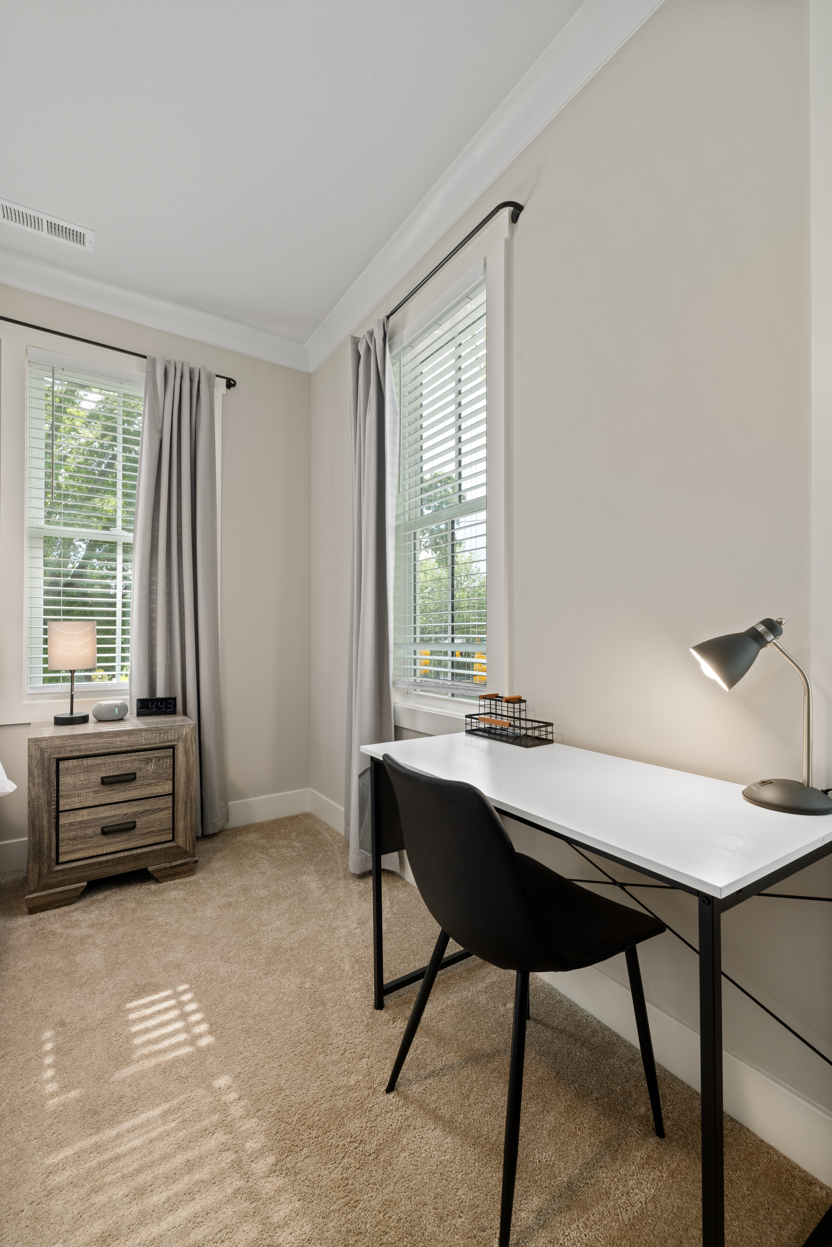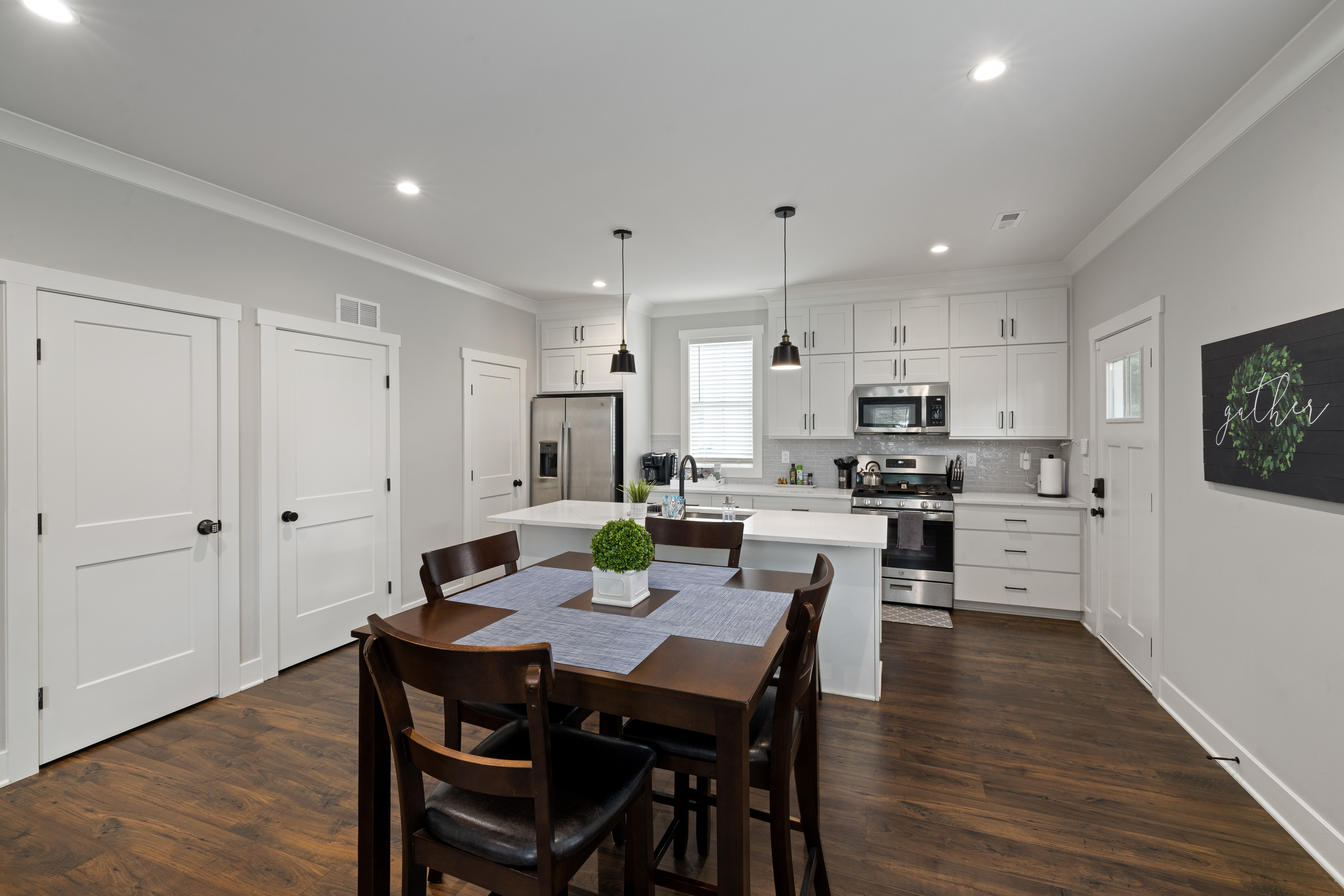 Spotless new-build in Trinity Park with 2 ensuite bedrooms, fast Wi-Fi, and TVs in every room. Guests love the thoughtful touches, plush bedding, and fully stocked kitchen. Driveway parking for 2 cars plus EV charger. Just a 5-minute drive to Duke University, Duke Hospital, Ninth Street dining, and downtown Durham. Quiet, safe neighborhood with washer/dryer, blackout curtains, and white noise machines for restful stays—your home away from home.